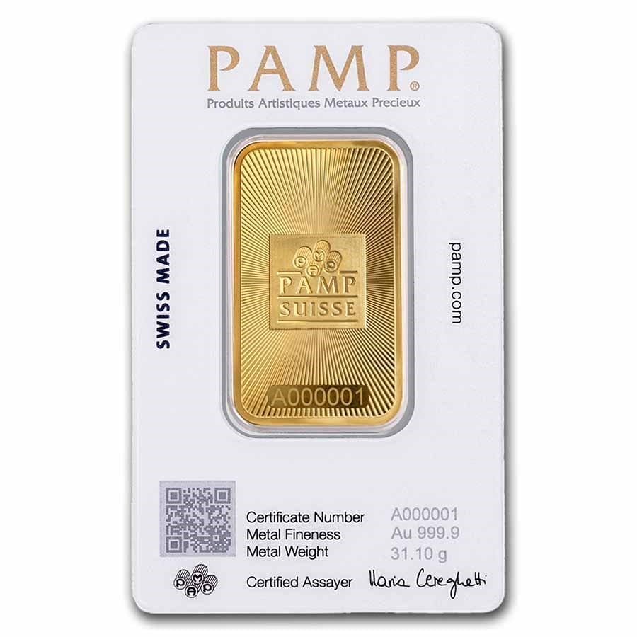 This 1 oz gold bullion bar features the Latest design started by PAMP Suisse, a reputed precious metal refinery firm based in Switzerland. It is a highly reliable brand in the realm of precious metal products because of their extraordinary quality criteria.