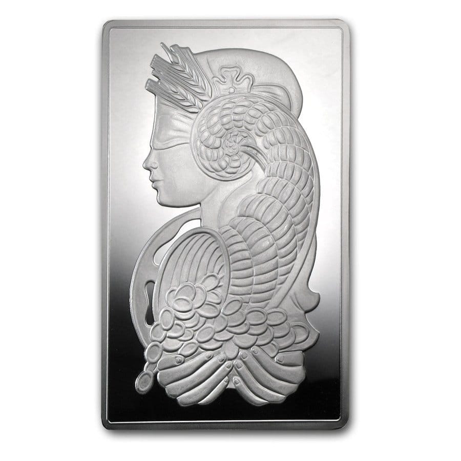 These 5 oz Silver Pubs display one of The most well-known images of Lady Fortuna, the Roman goddess of luck. These bars are a popular way to incorporate Silver exemptions into some investment portfolio.