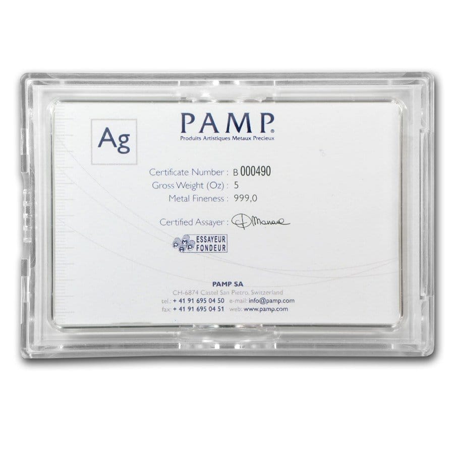 Reverse: PAMP Suisse logo, purity and weight along with a unique serial number.Comes with a certificate of authenticity from PAMP Suisse.